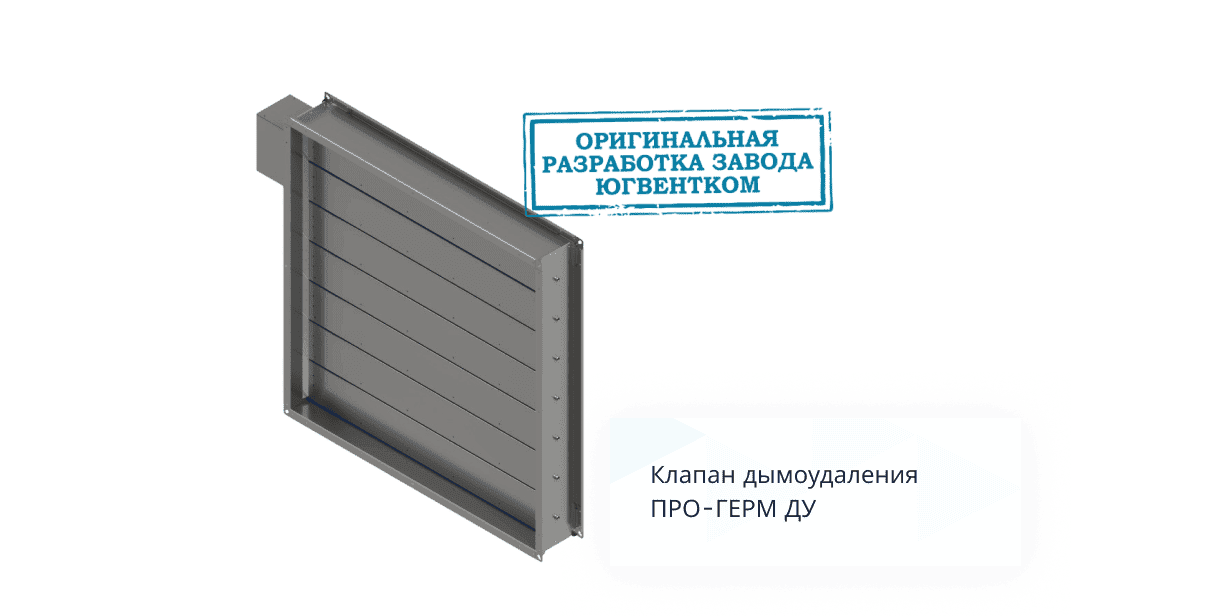 Клапан ПРО-ГЕРМ-ДУ — воздушный клапан с нормально закрытым положением заслонки, устанавливаемый в проёмах дымовых шахт, каналов и воздуховодов систем вытяжной противодымной вентиляции и предназначенный для открытия при пожаре с целью удаления продуктов горения и дыма из защищаемых помещений.